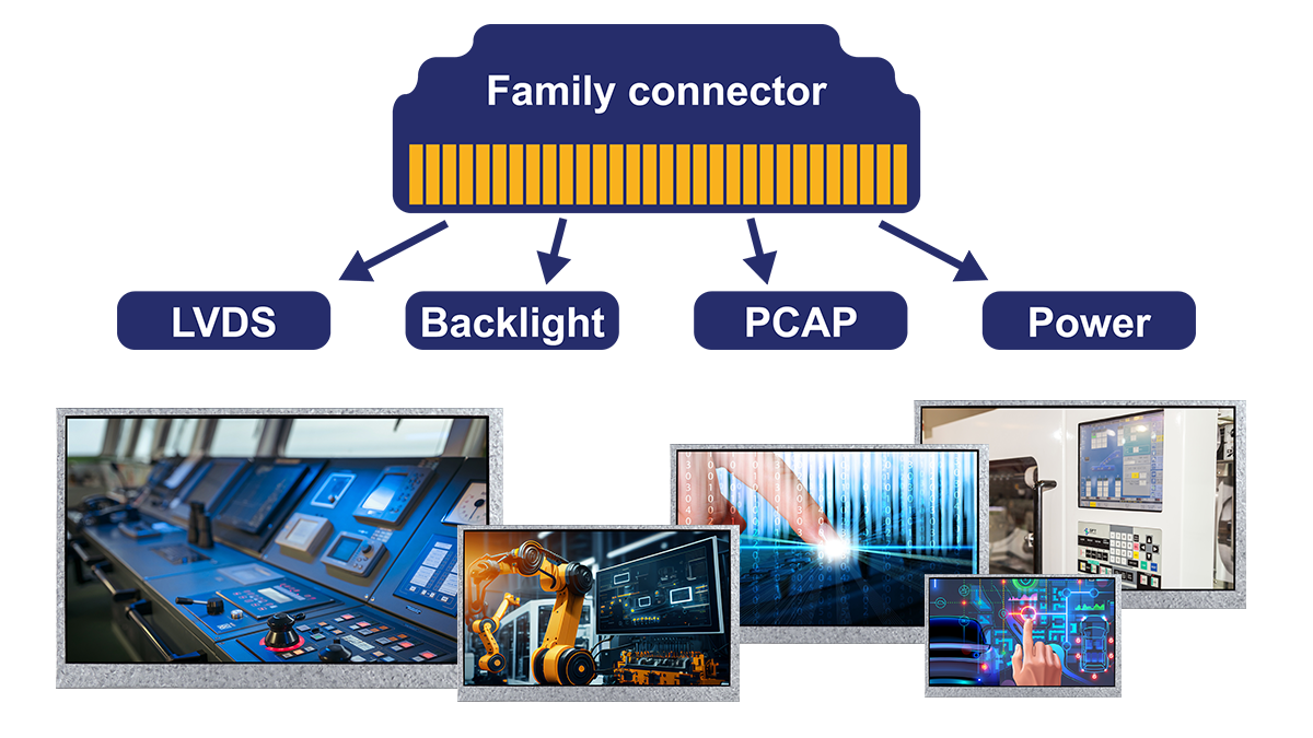 For all professionals The Family Display Series is suitable for various professional applications, including testing equipment, IoT systems, and instrumentation tools. Ideal for apparatus involving machine control panels, process monitoring displays, and smart factory dashboards.